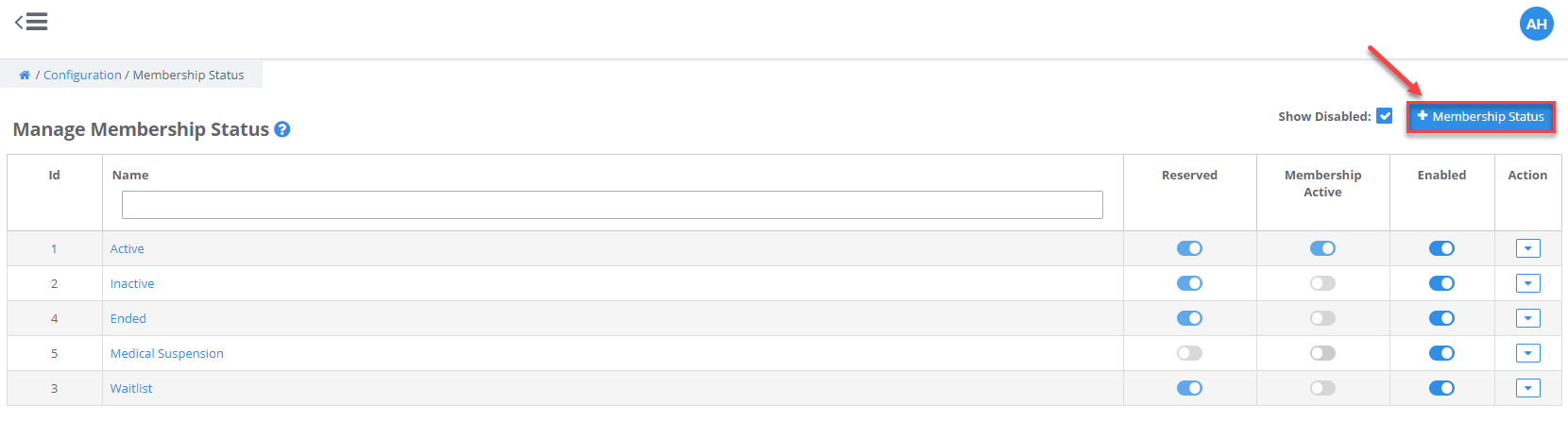 Step 2 - In the Manage Membership Status screen click +Membership Status button