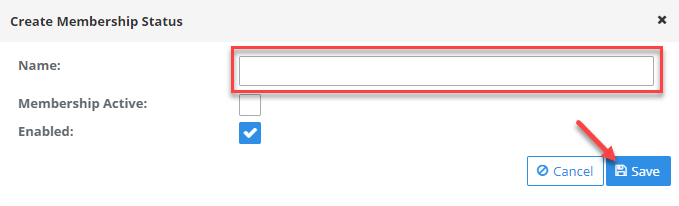 Step 3 - In the Create Membership Status window assign a name for the membership status and then click Save.