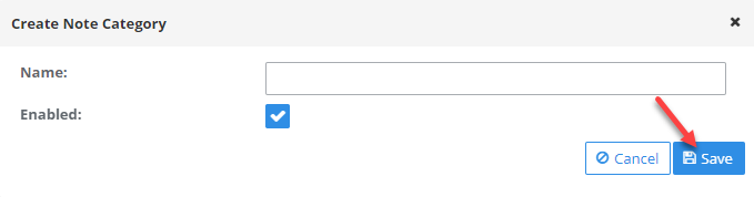 Step 2 - In the Manage Note Category screen click the +Note Category button