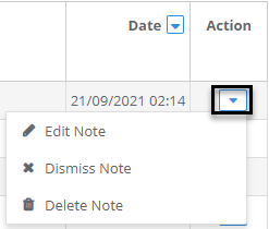 Edit, Dismiss or Delete notes from the archive using the member's Action button (on the far right column).
