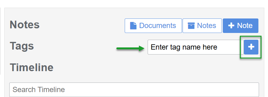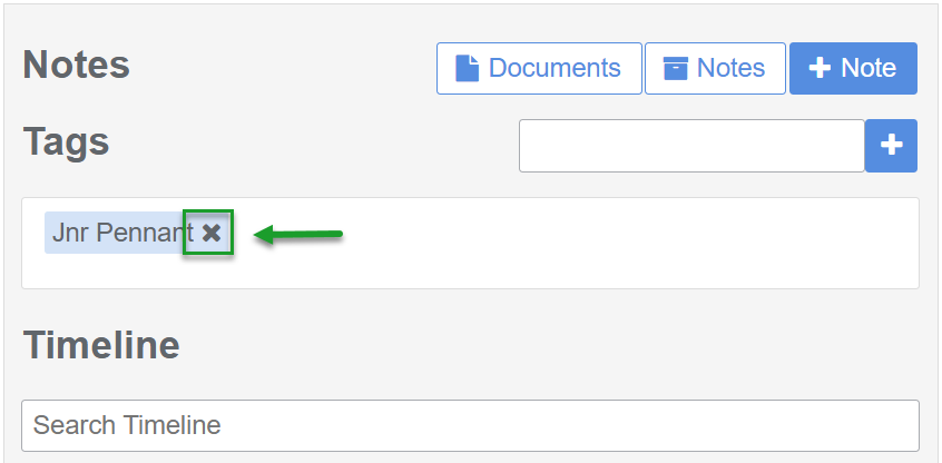 - Locate the Tag field (between the Notes section and member Timeline)