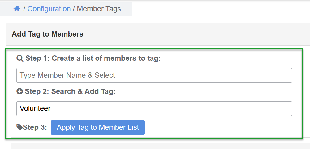- Step 1 Create a list: Enter the Member Number or Member Name and Select from the member drop menu. Repeat to add multiple members to the tag