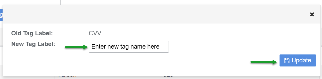 - Enter a New Tag label name