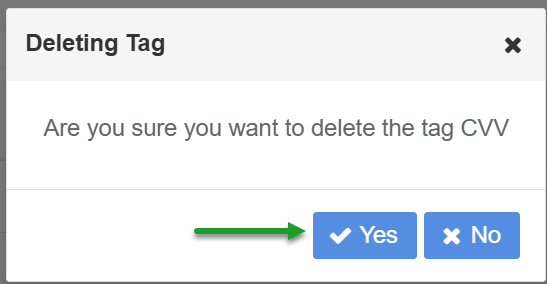 - Under the Manage Existing Tags display click the Delete button for the tag