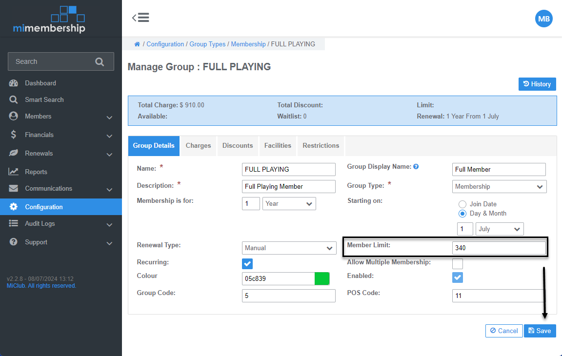 Step 1 - Add a Member Limit to all Groups that require a Waitlist Status