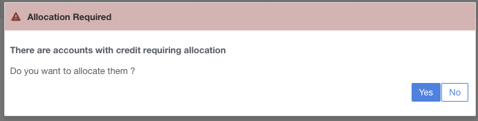 Note: MiMembership will issue a warning that requires action (Yes or No) when a member already has an unallocated credit in an account at the time a new payment is created.