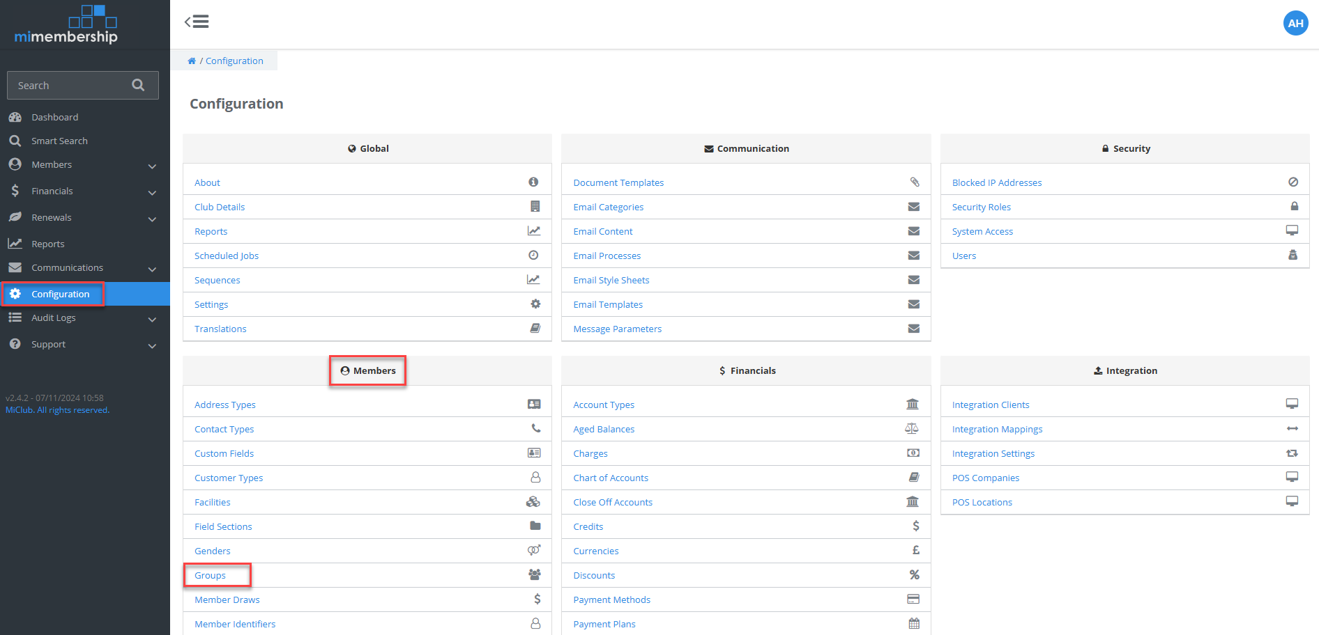 Step 1 - Navigate to Configuration and click Groups under Members heading