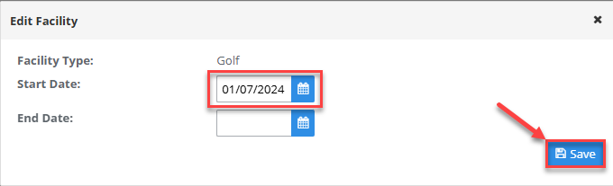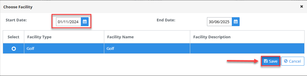 Step 3 - Click drop down menu in Facility Type column and tick Golf. This will then show members with groups