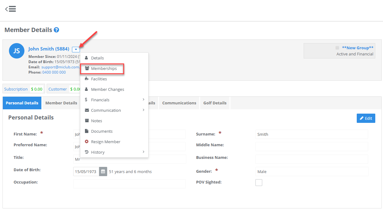 When a new membership group is created and the golf facility is added AFTER members have already been added to the group, then the golf facility is to be added manually. This process is outlined in the steps below.