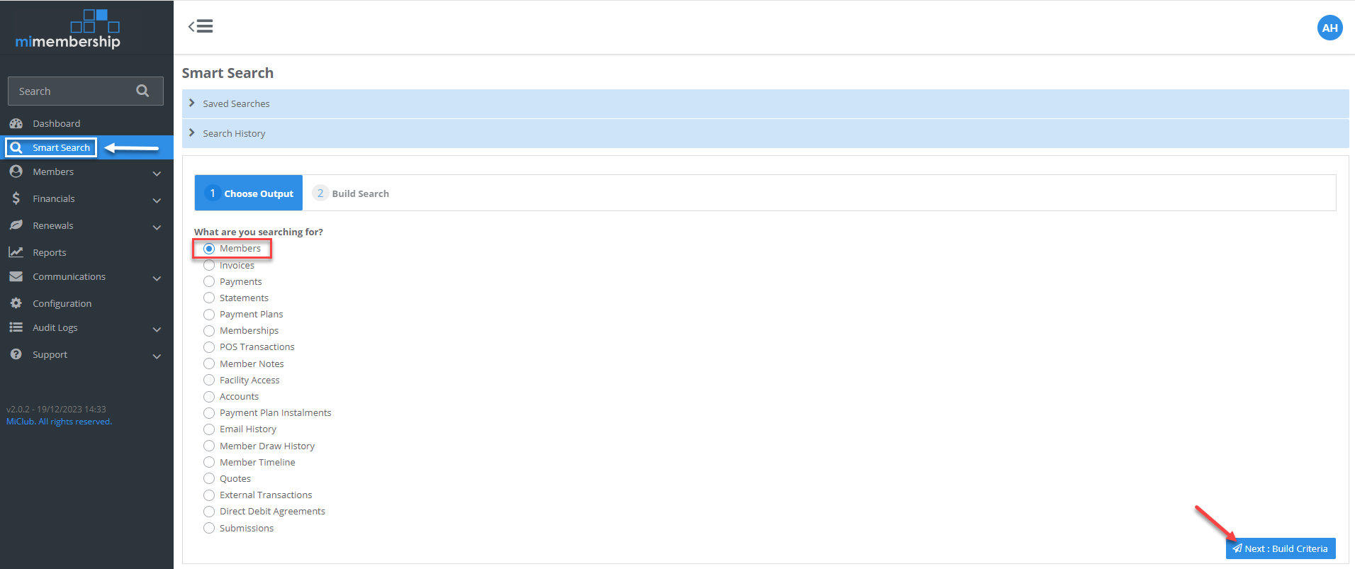 - Set the Criteria for the Memberships in each of the Search Field options: