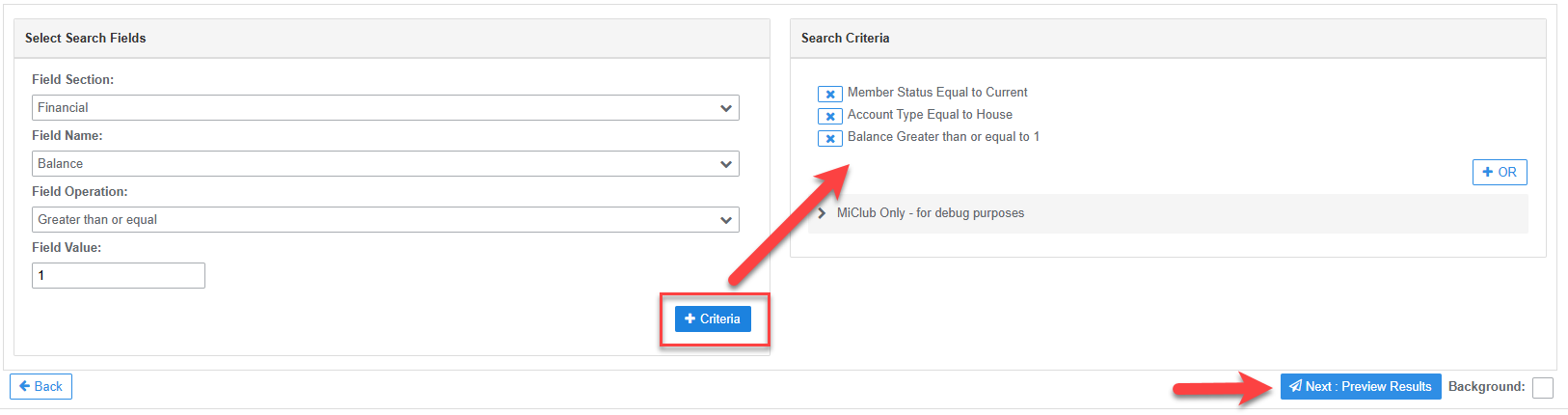 Use a smart search to generate statements and email or print statements to members who have an account balance greater than or equal to a specified amount.