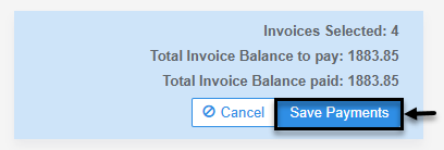 - Click the Save Payments button. Check the Total Invoice Balance paid matches your bank or other report/s used to confirm payments received
