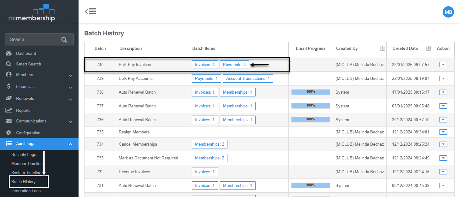 Tip: Bulk actions can be viewed at any time in the Batch History, accessible under Audit Logs in the main menu