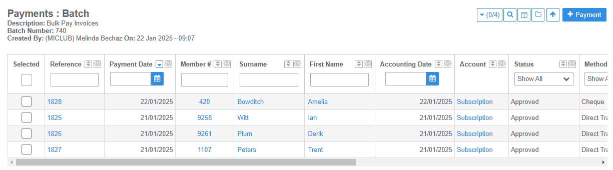 - The Payment Method and Payment Date can be edited for individual payments