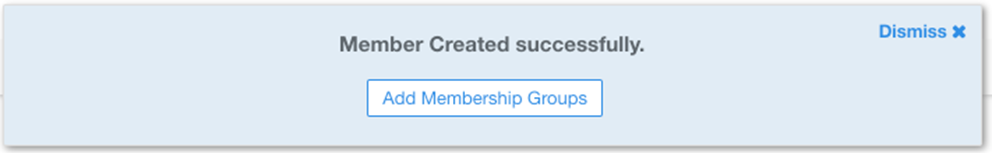 - Task bar appears to confirm the member record has create successfully and to Add Membership Groups
