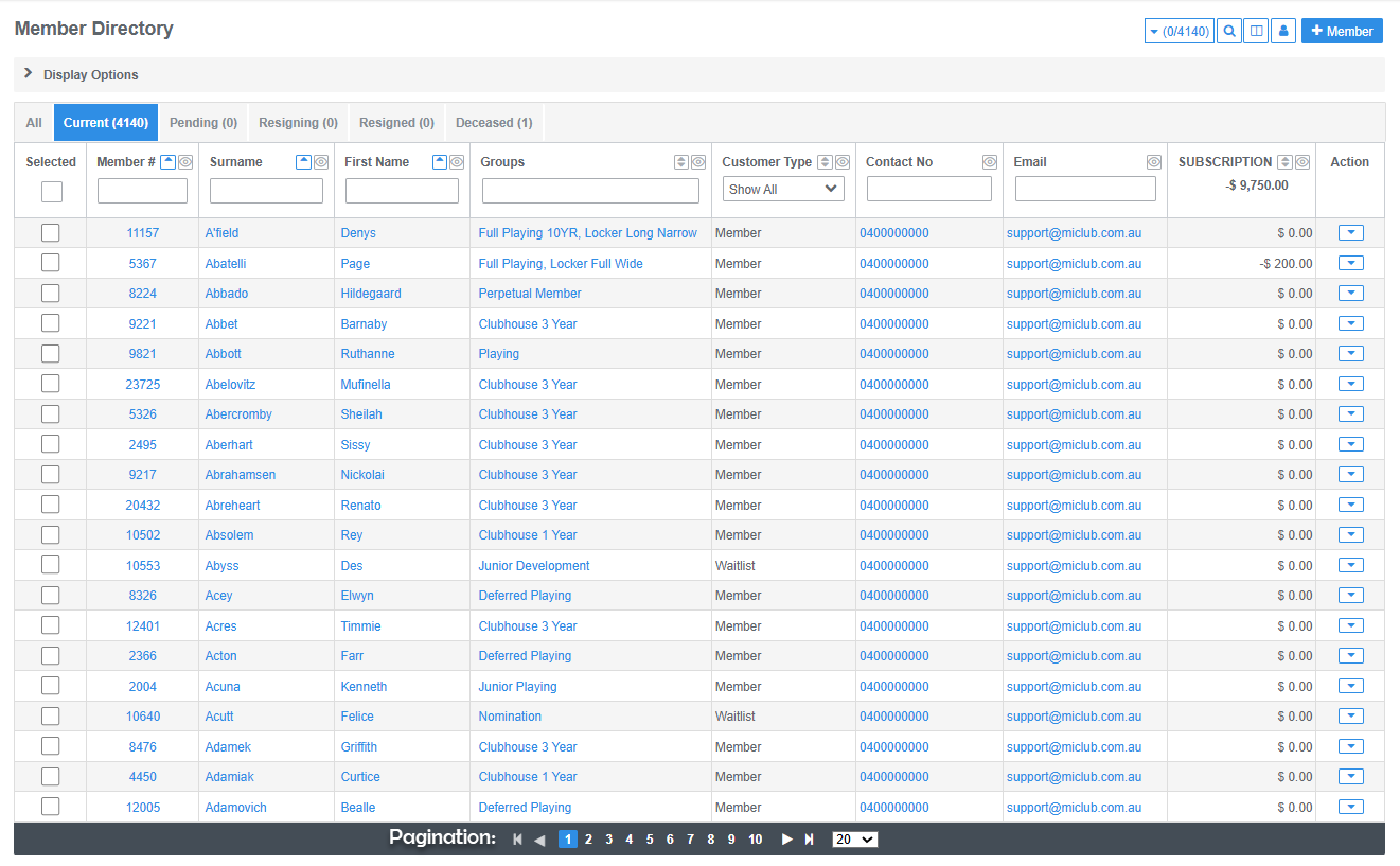 - Click on a members name to view personal details