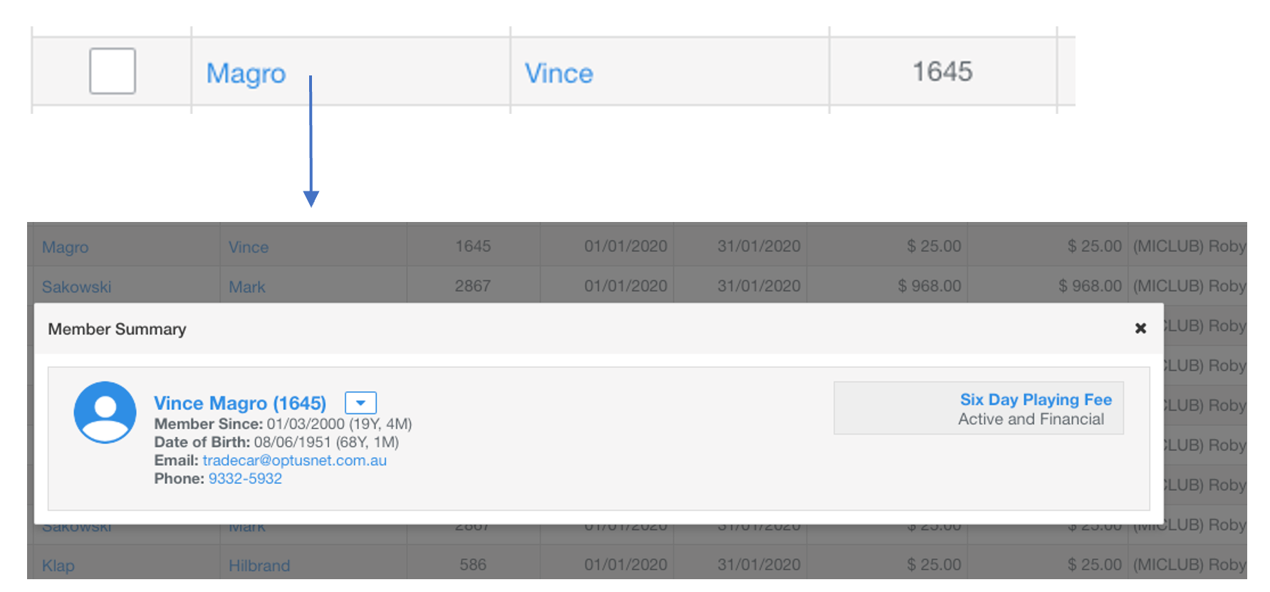 Tip: From the invoice repository click on a member’s name and navigate to their membership details
