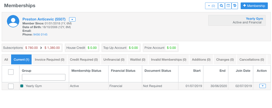 - Current: the membership groups assigned to the member for the current membership period
