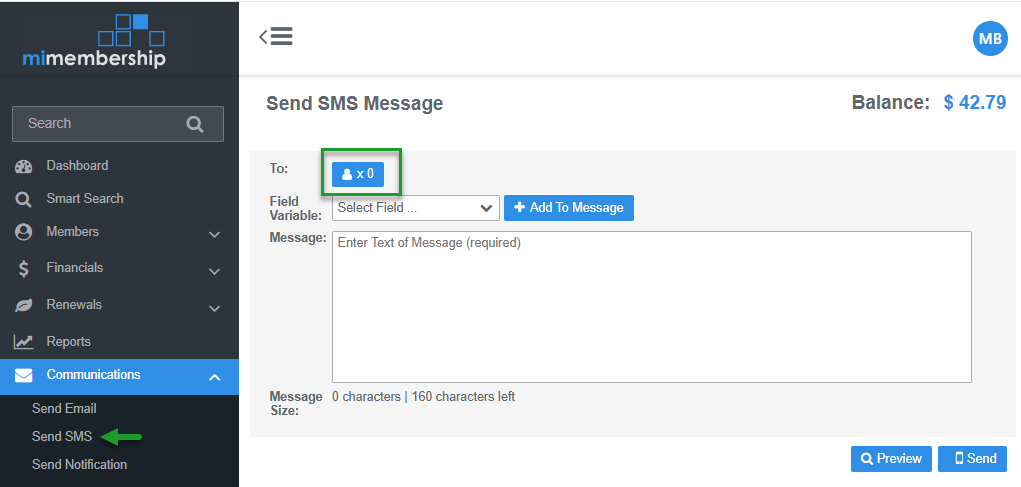 Send an SMS message to individually selected members (recipients). During this process you can: